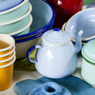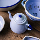 A true kitchen essential, our enamel teapot brings classic charm to tea time. With a beautifully curved spout and beautiful handle. It also looks great as a feature on open shelving.