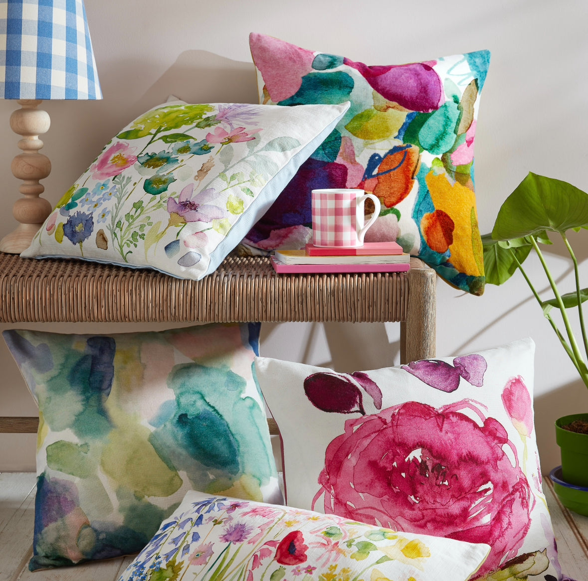 This collection of new style cushions features some of Fi’s most beloved Bluebellgray archive designs, all originally hand-painted in her signature watercolour style, making each one a piece of art for your sofa. Each cushion includes a "feel like feather" inner made from super-fine recycled polyester fill for a plush, cloud-like feel, and a 100% cotton cover with a solid slubby reverse in a signature Bluebellgray shade. This new style of cushion is also machine washable for easy care.