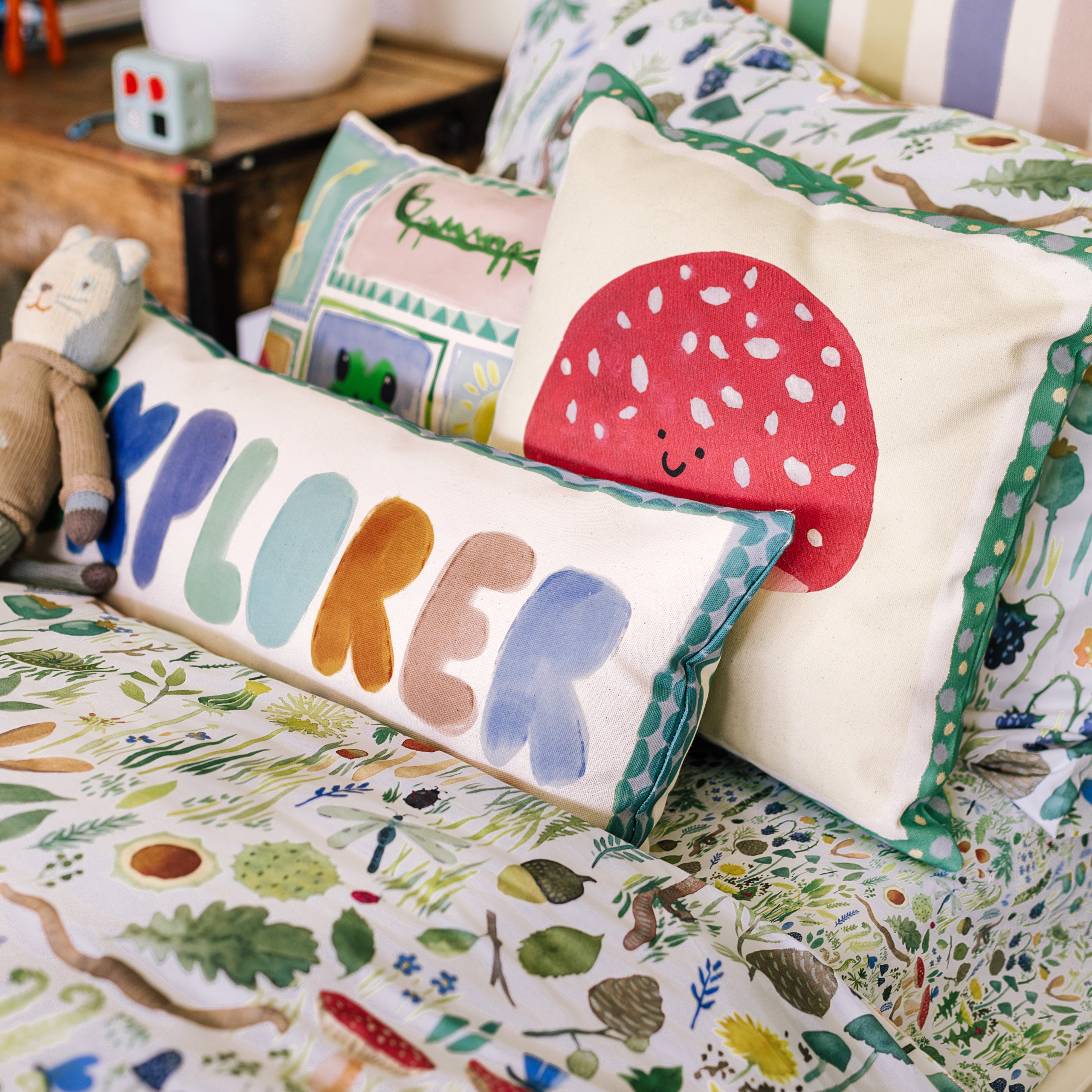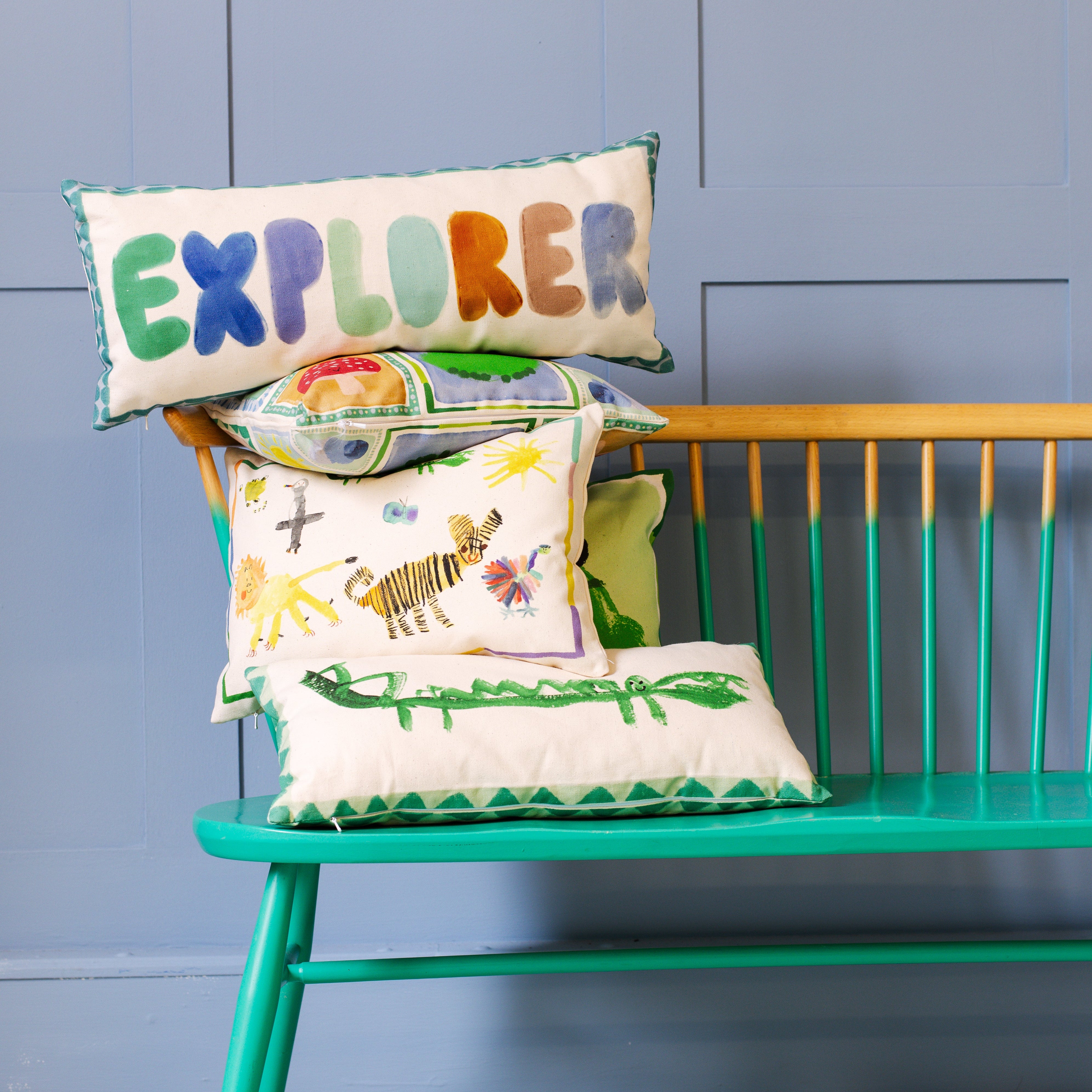 Our cushions, crafted in Scotland, are designed to be cosy companions for little dreamers, adding both style and comfort to children’s spaces. Made with organic, OEKO-TEX® certified fabrics, they ensure a safe and gentle touch for young ones. With delightful patterns and colours that appeal to kids and design-conscious parents alike, these cushions are perfect for curling up with a favourite book or adding a splash of character to any room. Although... it's not just a cushion - it’s a pillow fort, a speed boat, a cosy castle. Wee Blue Bell Cushions bring a touch of magic, comfort, and creativity to every corner they adorn.