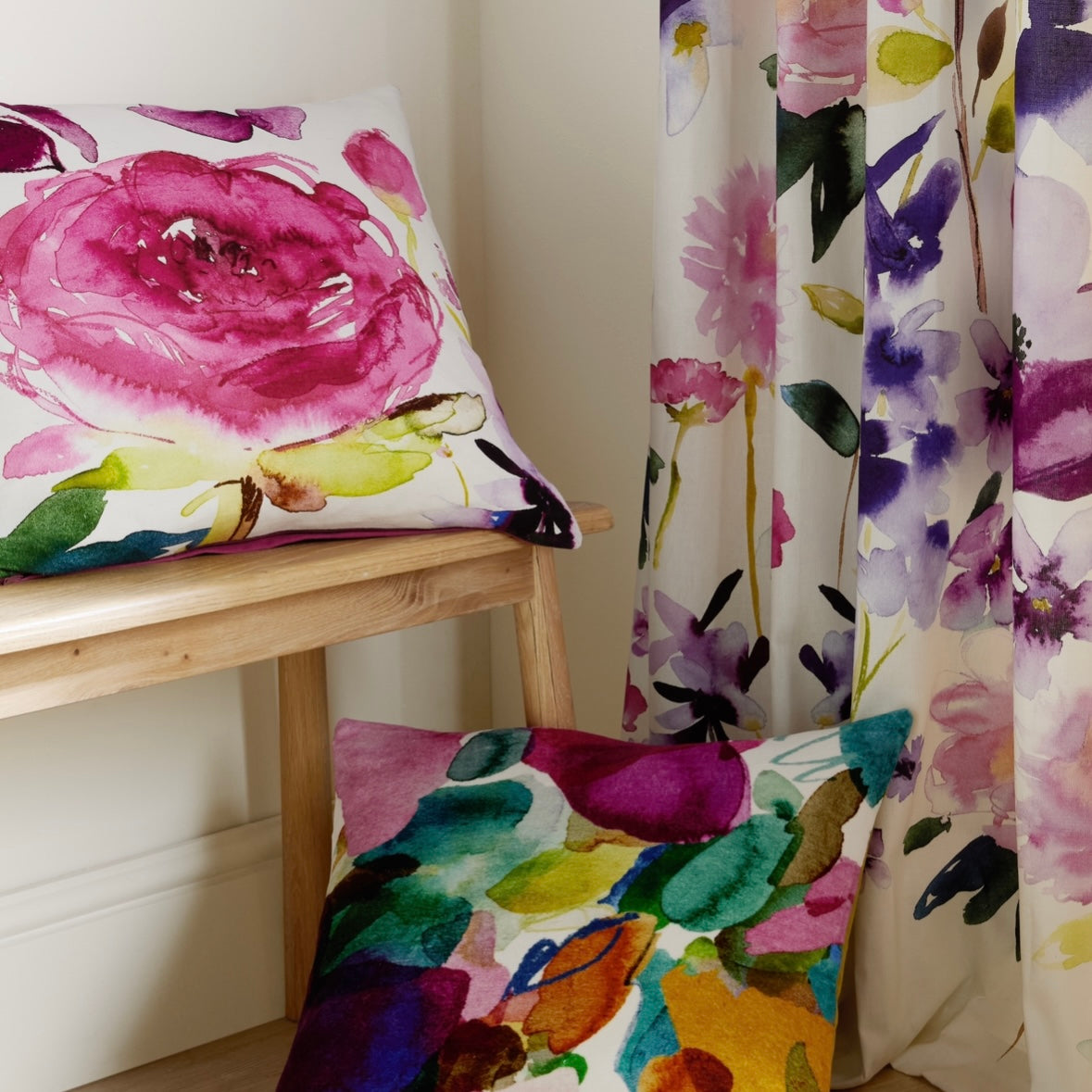 This collection of new style cushions features some of Fi’s most beloved Bluebellgray archive designs, all originally hand-painted in her signature watercolour style, making each one a piece of art for your sofa. Each cushion includes a "feel like feather" inner made from super-fine recycled polyester fill for a plush, cloud-like feel, and a 100% cotton cover with a solid slubby reverse in a signature Bluebellgray shade. This new style of cushion is also machine washable for easy care.