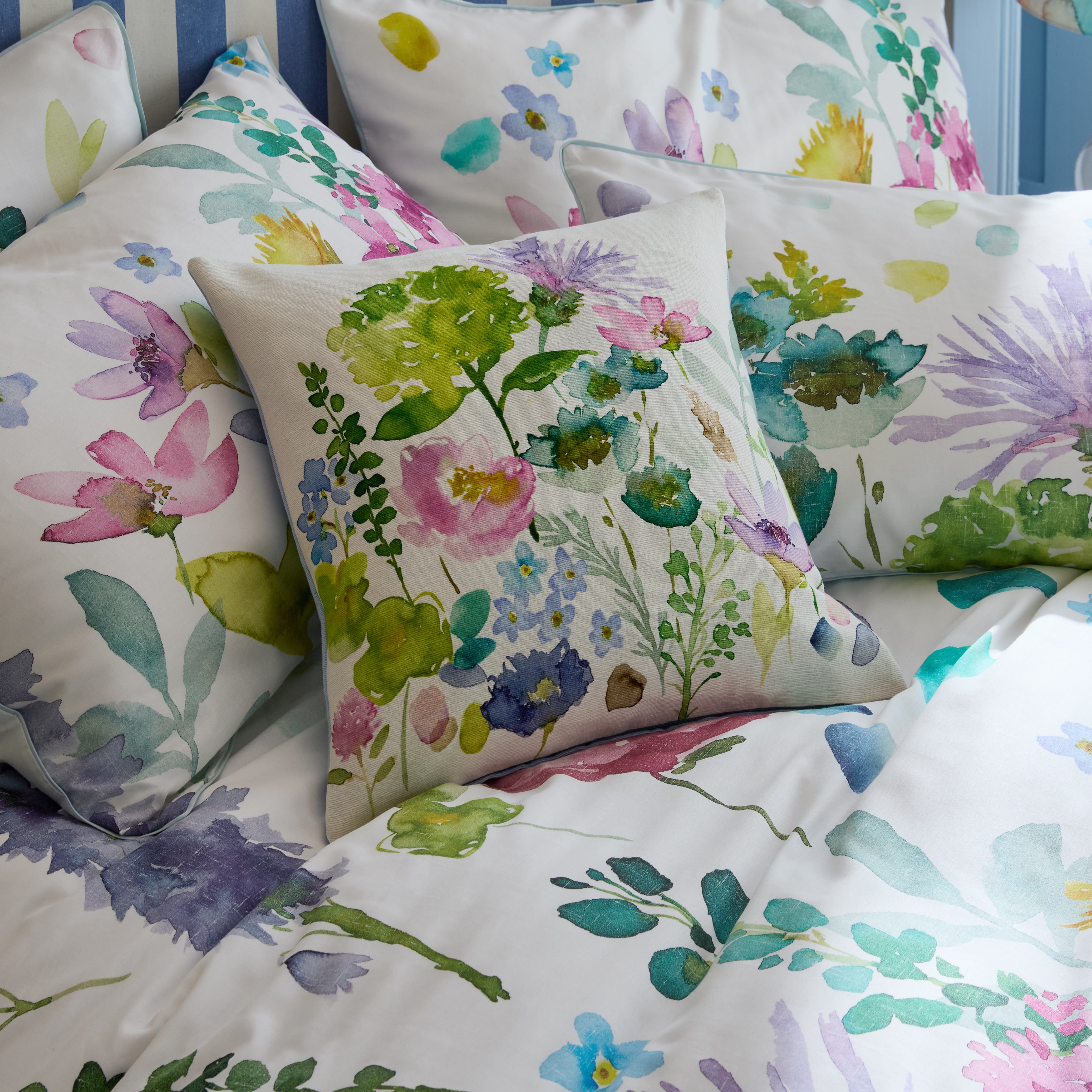 This collection of new style cushions features some of Fi’s most beloved Bluebellgray archive designs, all originally hand-painted in her signature watercolour style, making each one a piece of art for your sofa. Each cushion includes a "feel like feather" inner made from super-fine recycled polyester fill for a plush, cloud-like feel, and a 100% cotton cover with a solid slubby reverse in a signature Bluebellgray shade. This new style of cushion is also machine washable for easy care.