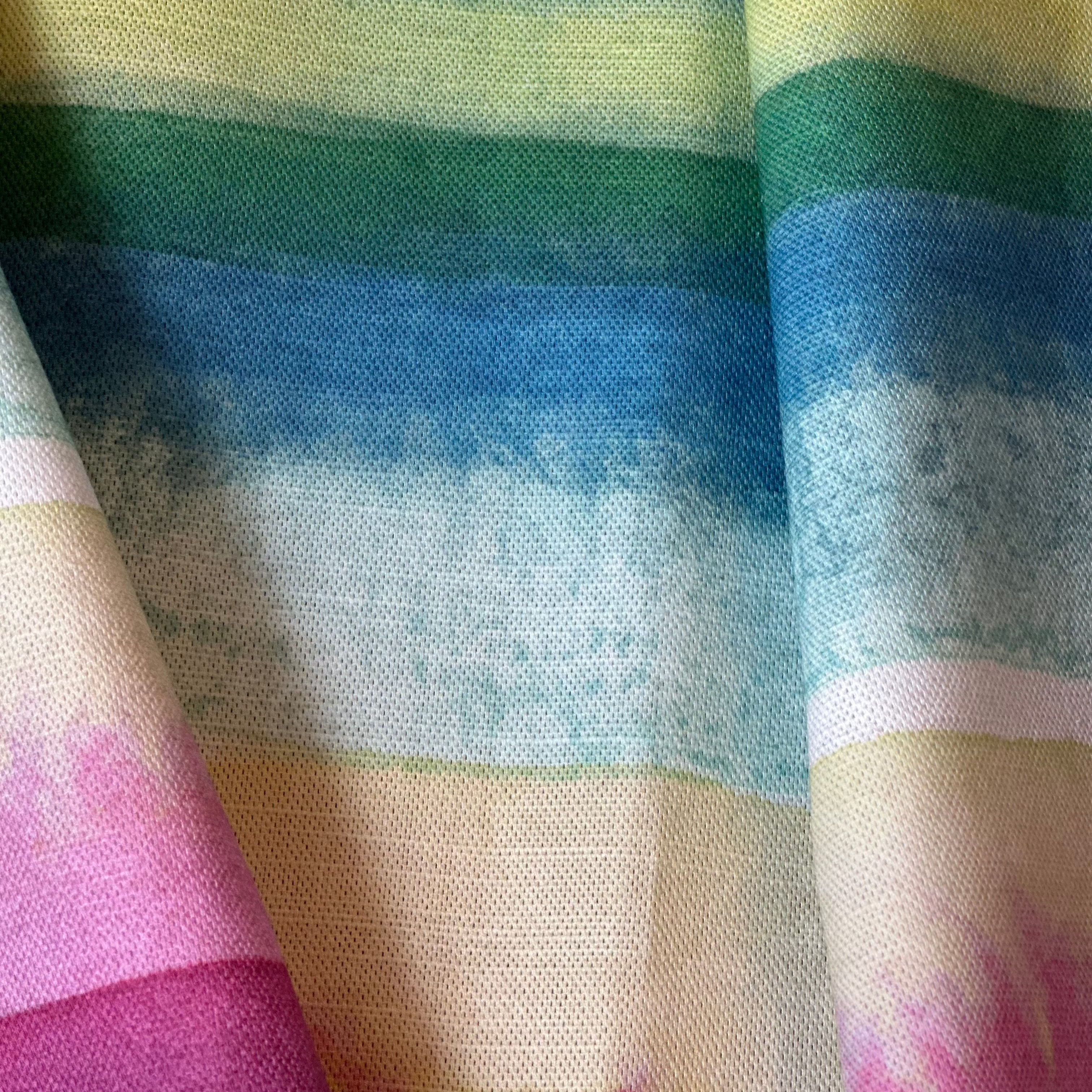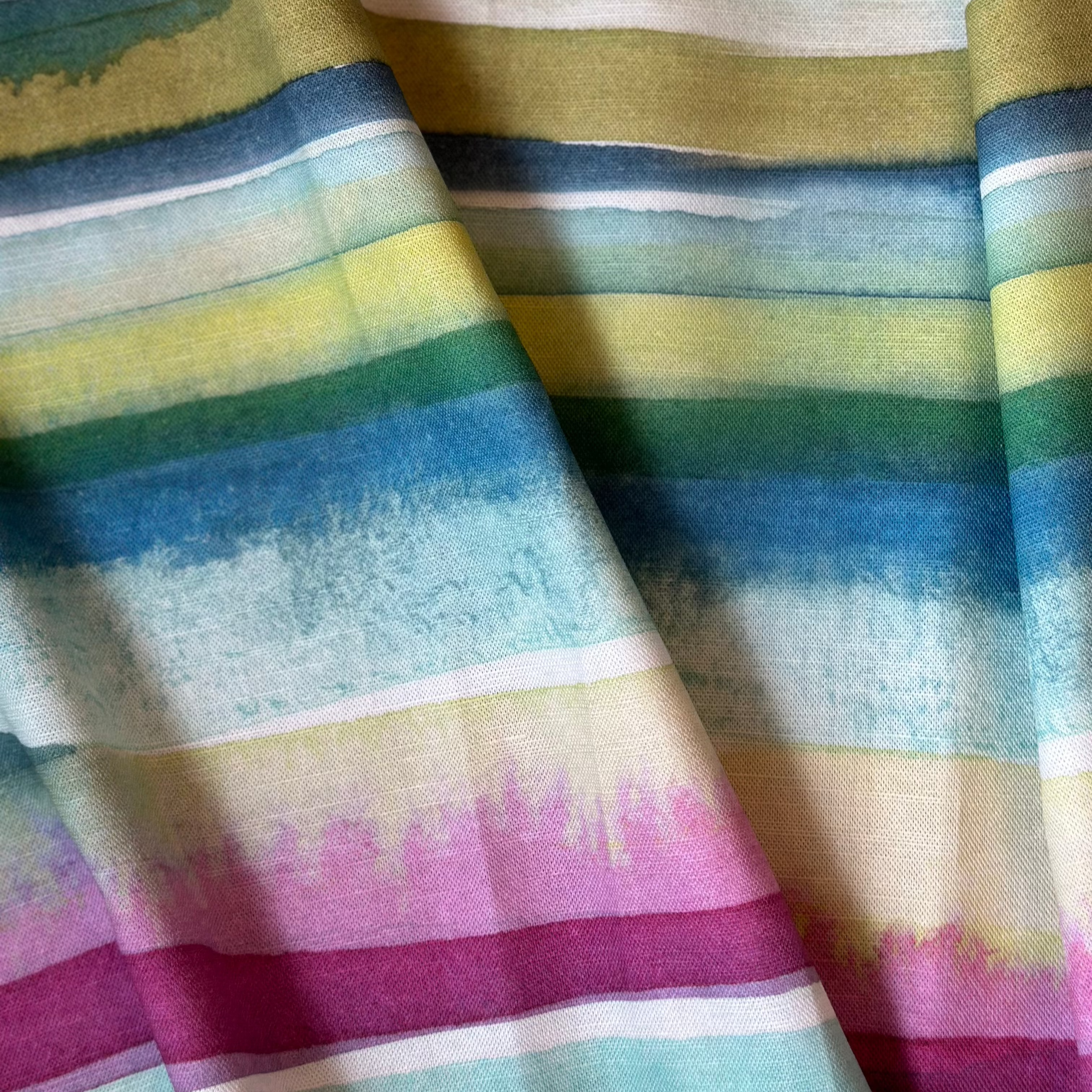 Part of our archive re-launch. Lomond features beautifully abstracted stripes inspired by Loch Lomond in Scotland, painted in a watercolour palette of turquoise punctuated with cerise pink layers.