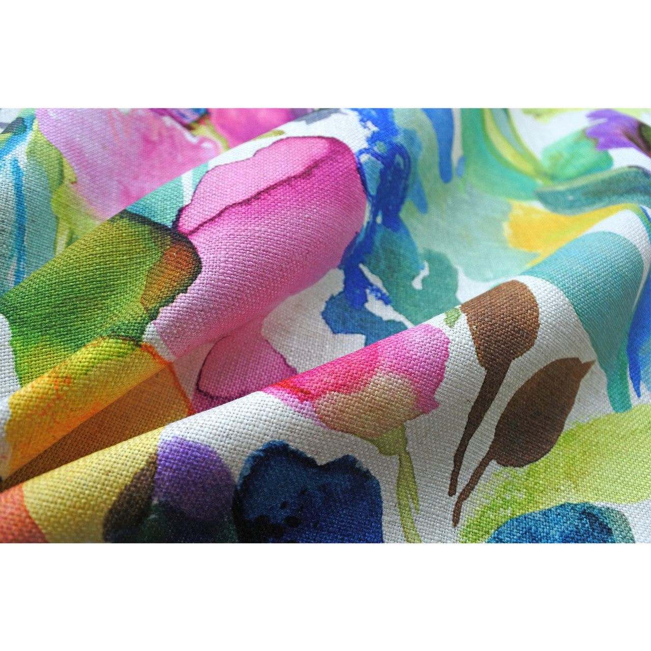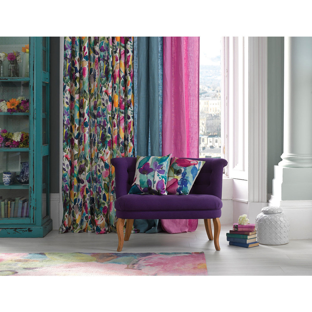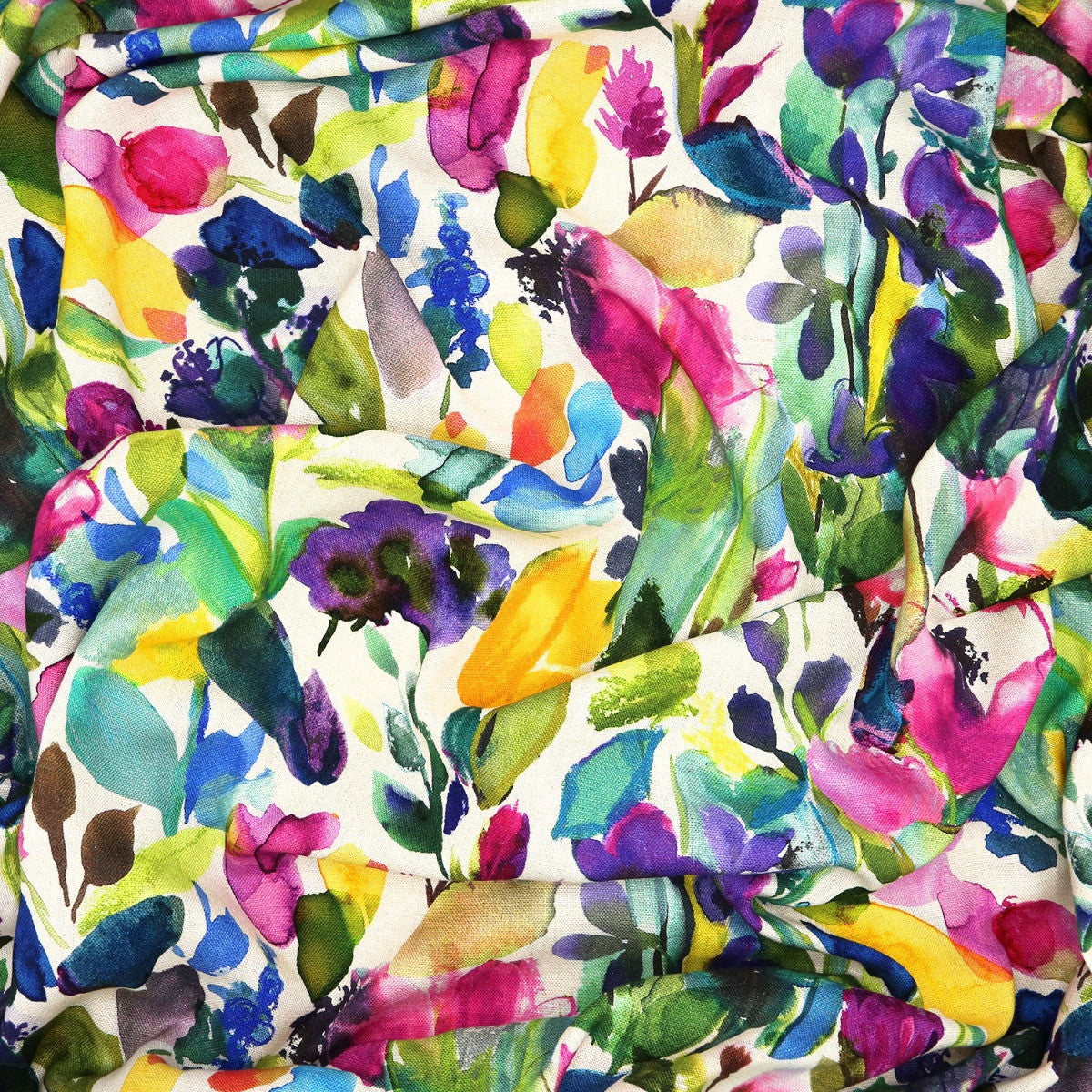 The Petite Mode fabric features multicoloured signature bluebellgray painterly brushstrokes in a bright, popping palette of pink, green, duck egg blue, purple and yellow. Style this statement design with block colours or mix and match with contrasting prints to create an eclectic look.