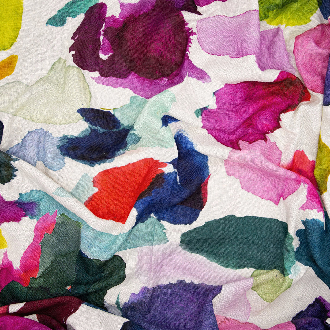 The organic multicoloured painterly shapes of the Philippe fabric, a large scale brother to the iconic Abstract print, are born from Fi's natural painting process. The palette that evolves when she creates her original watercolours in her favourite pink, purple and teal with pops of red and green. Mix and match with block colour and contrasting prints to create a true design statement.