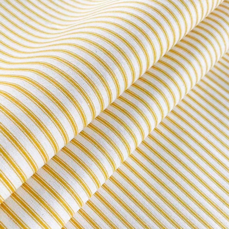 This ochre ticking stripe fabric is part of our range of semi plain fabrics - perfect for layering with our prints, patterns and colours. A classic design comprising mustard yellow and crisp white tones.