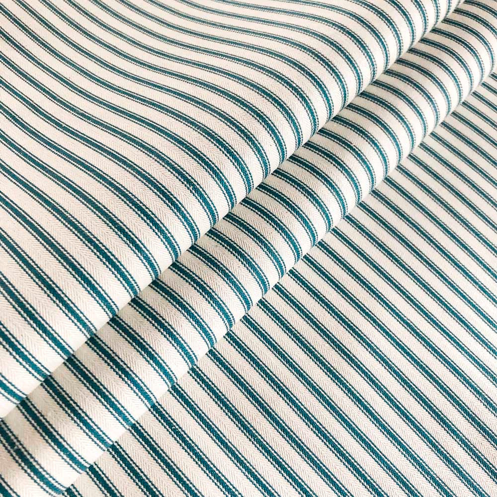 This Peacock ticking stripe fabric is part of our range of semi plain fabrics - perfect for layering with our prints, patterns and colours.