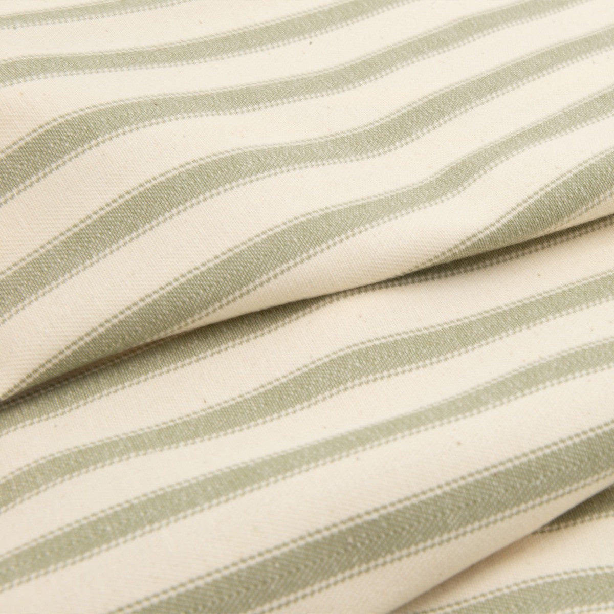 This sage ticking stripe fabric is part of our new range of semi plain fabrics - perfect for layering with our prints, patterns and colours.