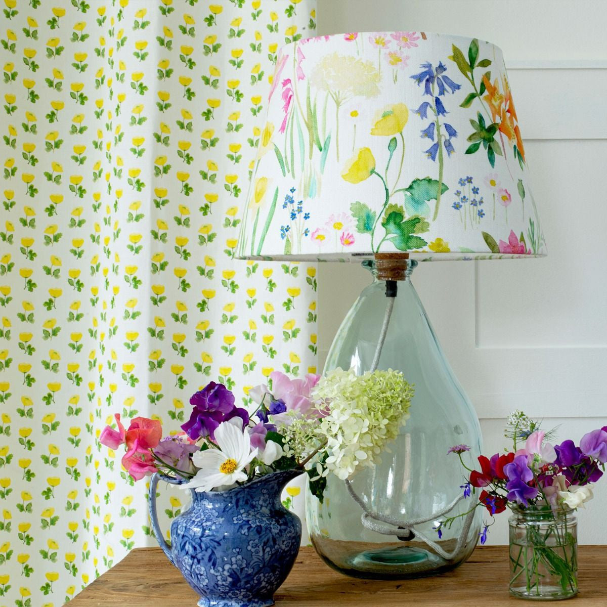 Borne from the weeks we all spent at home in Spring 2020, Isolation Garden is a colourful reminder of not only nature's beauty, but our collective hope and resilience. This beautiful floral fabric lampshade is printed on 100% cotton, featuring Fi's hand-painted daisies, daffodils, poppies, rhubarb and azaleas.