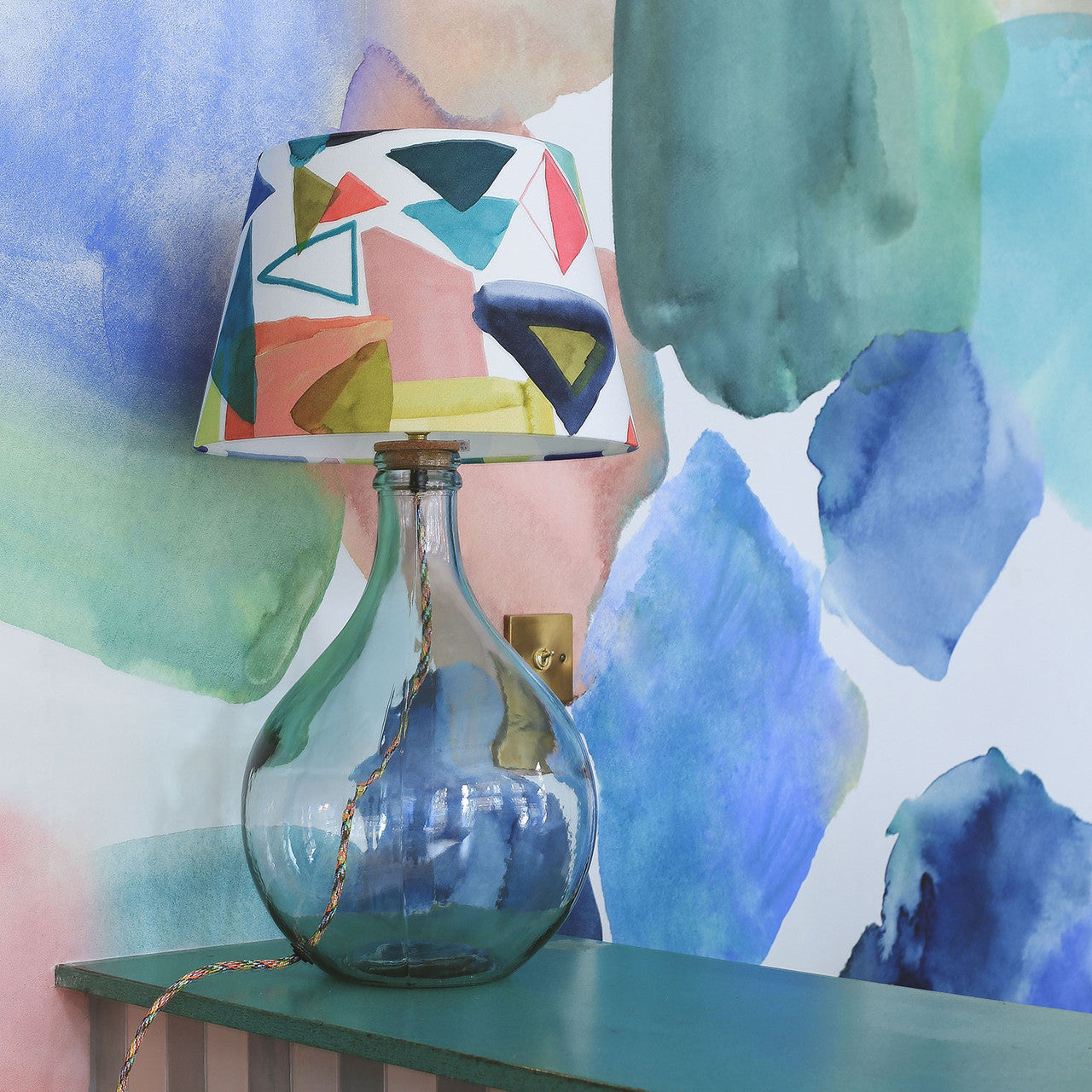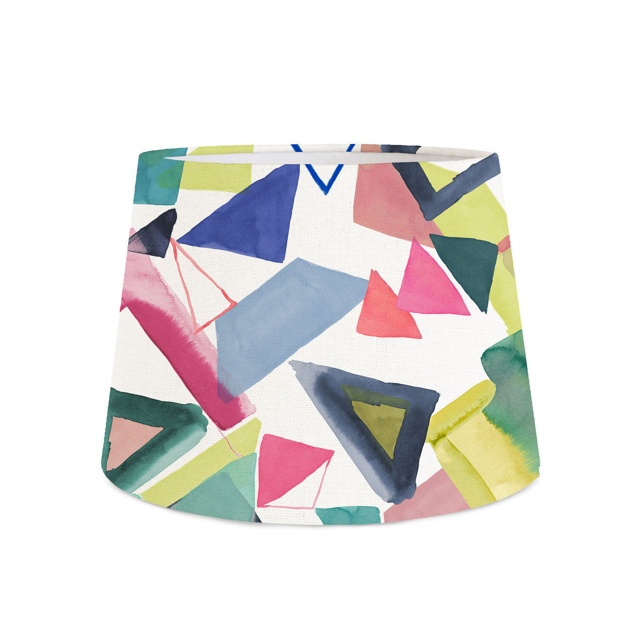 The Wee St Ives Retro Lampshade displays colour through triangular and block shapes painted in true signature watercolour style. This contemporary design offers a multi-coloured palette inspired by creating unique compositions through pattern play in the studio. Available in 3 sizes - 18", 14" and 10".