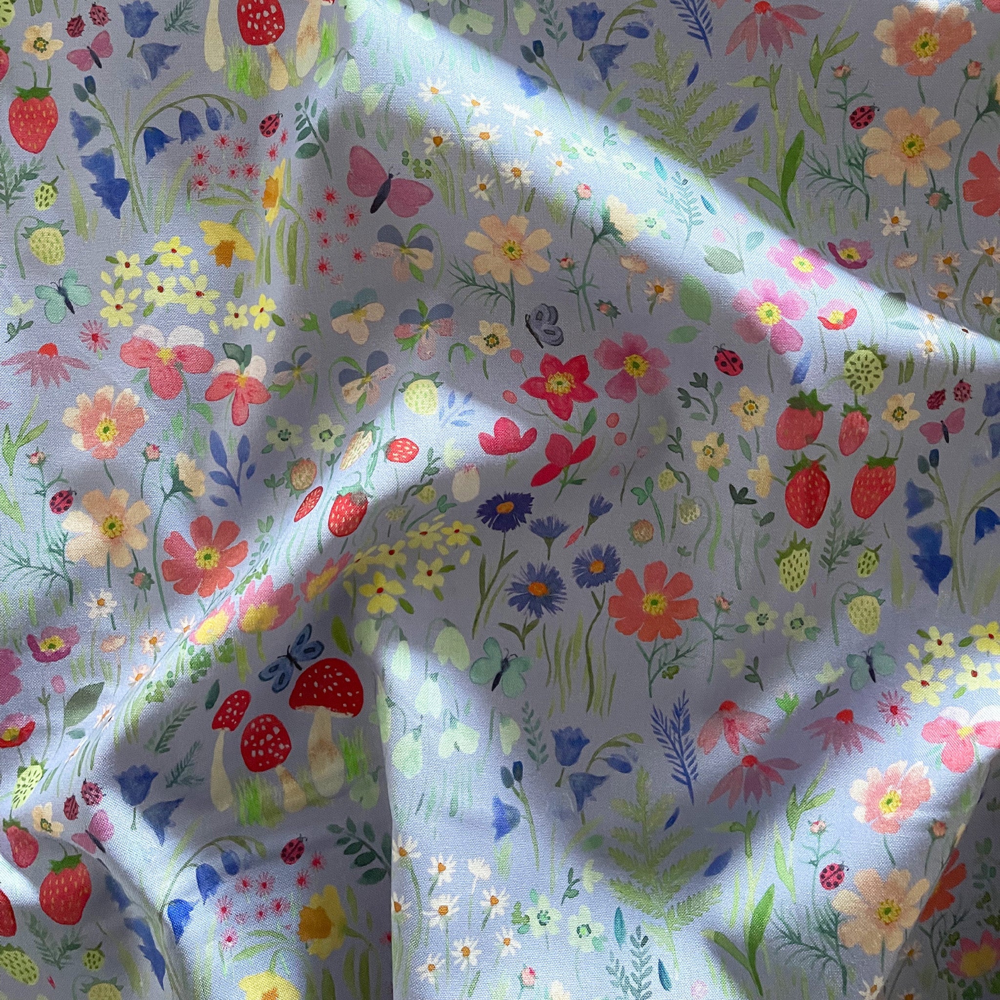 Step into your very own joyful Secret Garden, with delicate bluebells, fluttering butterflies, juicy strawberries, and fresh foliage. We think there is a ladybird hiding in there too! This is the collection for those little ones who love to pick flowers and run wild and free. From delicate florals to colourful ginghams, our hand-painted designs evoke a sense of nostalgia and fun. Delight in the playful palette of petal pink, grass green, cornflower and lilac. Whatever your craft project, Secret Garden, encourages bold pattern mixing and guarantees fun – let your imagination run wild!