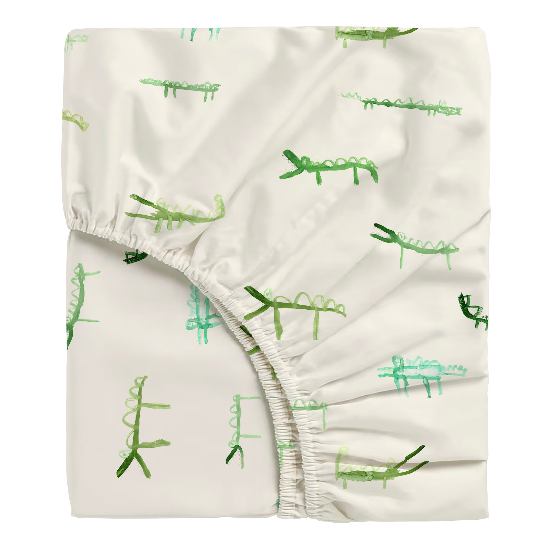 This design is super special, as all the crocs are hand drawn by Fi’s little boy Archie. A huge fan of crocodiles, when he first started drawing his favourite animal, it came out looking like a crocodile version of a stick man, and so his fabulous stick crocodile drawings started! Children’s bedding inspired by kids' own drawings, designed in a way that truly speaks to them.