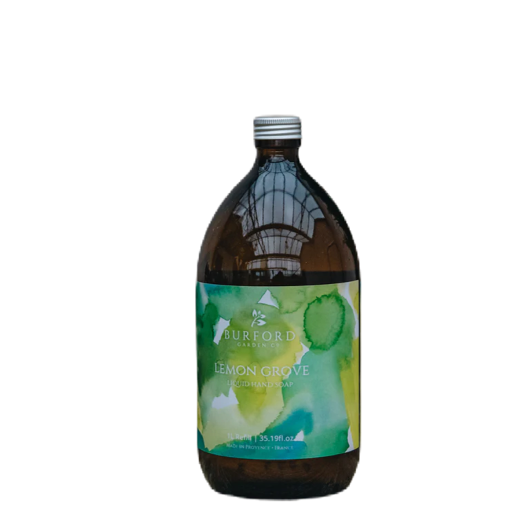 This is a 1ltr refill bottle for our liquid hand soaps made in collaboration with Burford Garden Co. They are delicately scented with fragrances inspired by their Cotswold garden, offering a comforting sense of nature when used. The zesty Lemongrove scent is inspired by the bright fragrance of rich, citrus oil and is both invigorating and refreshing.