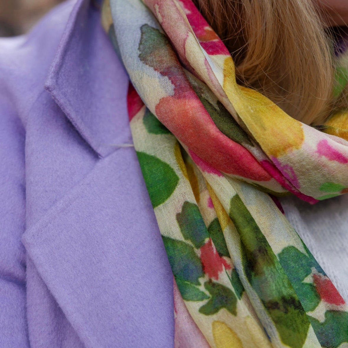 The Lightweight Wool-Silk Blend Scarf is back for a second year. This lofty scarf is crafted from a luxurious blend of wool and silk, offering the perfect mix of warmth and softness. Its delicate frayed edges gives it a soft look, while the lightweight feel makes it ideal for layering.
