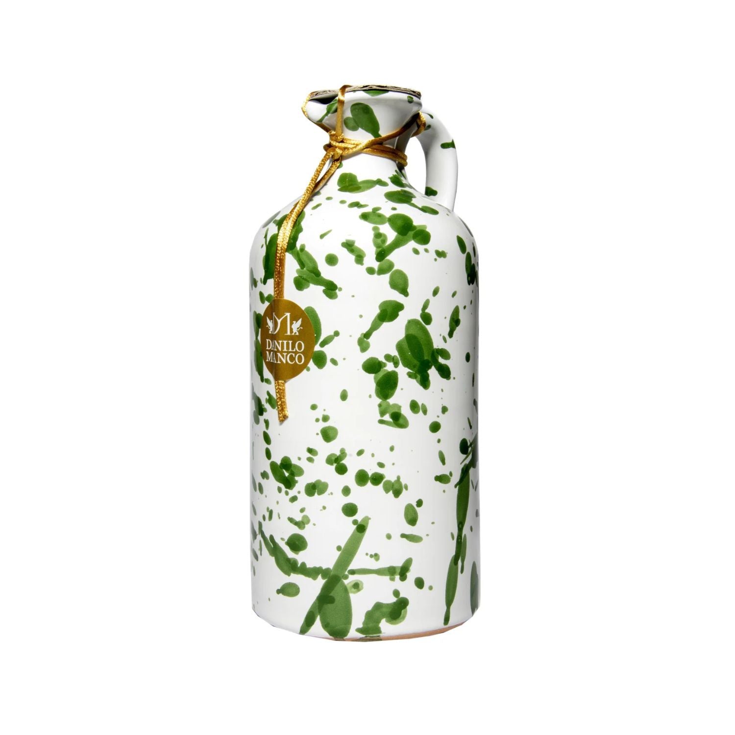 Ceramic jars, hand-made by expert artisans in Puglia. Each piece is unique because it is decorated by hand. Not just a unique bottle, inside a great EVOO to use every day to enrich your dishes.
