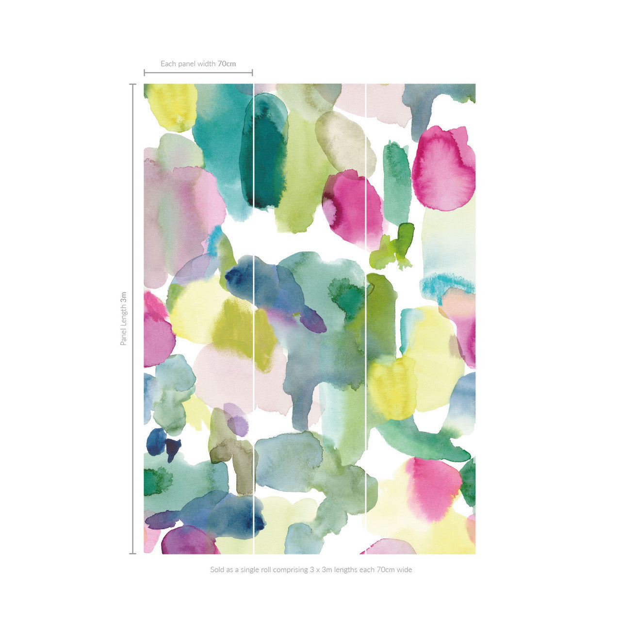 Big Rothesay wallpaper features our highly coveted Rothesay design in super scale for maximum impact in your home. An appealing abstract wallpaper, the free flowing nature of the paint is embraced as giant teal and cerise shapes blend and evolve to create a truly modern work of art. Inspired by the ever changing colours of the Scottish landscape, Big Rothesay would transform and elevate your interior decoration. The mica paper has a slightly iridescent finish. This wallpaper is sold as a single roll comprising 3 x 3m lengths (panel A, panel B, panel C) which have been created to sit together to provide a large scale design. Each roll is 70cm wide and a straight match.