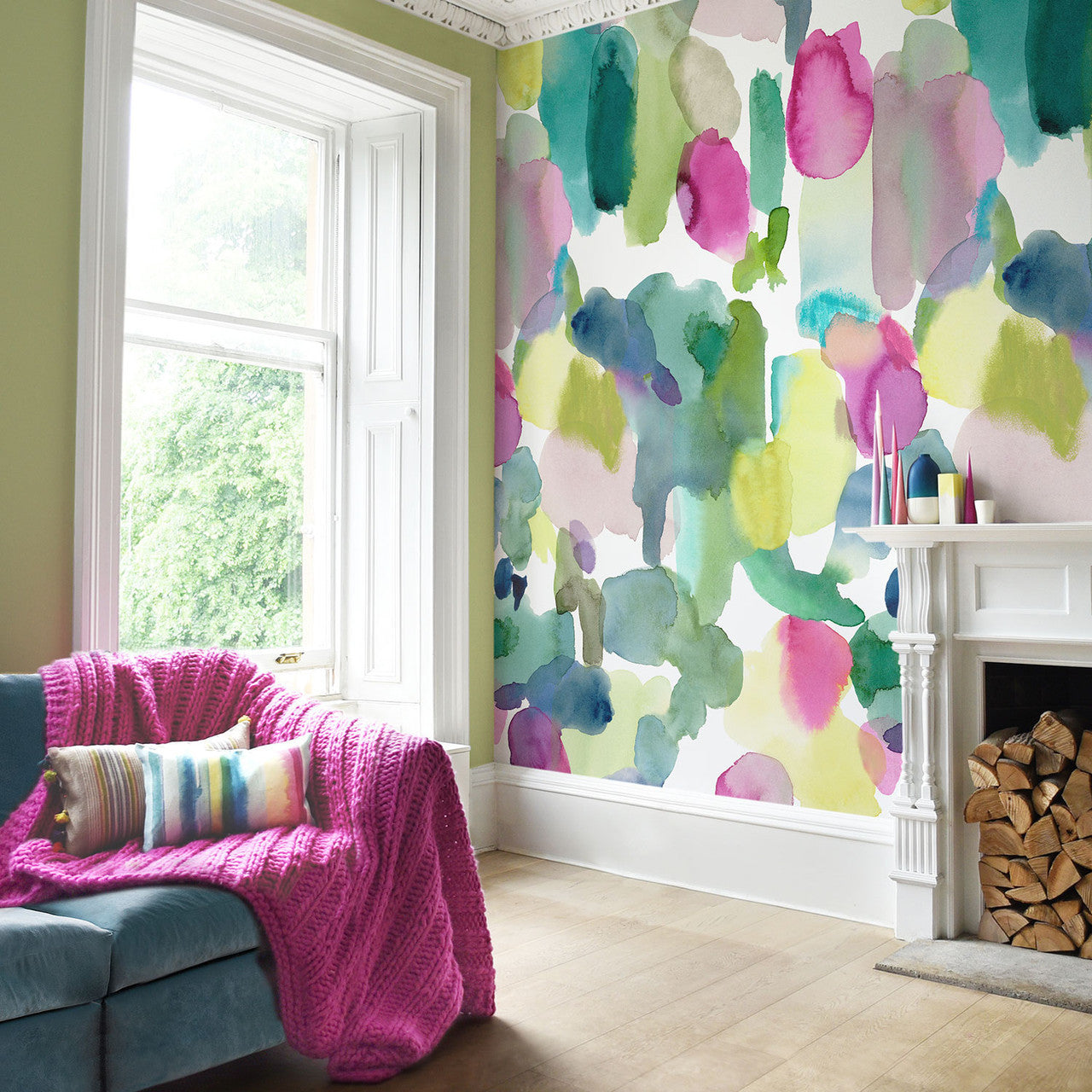 All of our wallpaper samples are A4 in size. Features and information including design repeats, roll widths and pack sizes are also included. Rothesay features super scale, organic marks in a signature bluebellgray palette. Giant teal and cerise shapes blend and evolve to create a truly modern work of art inspired by the ever changing colours of the Scottish landscape.