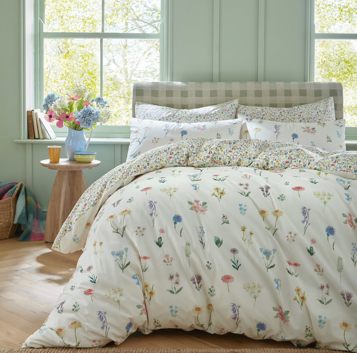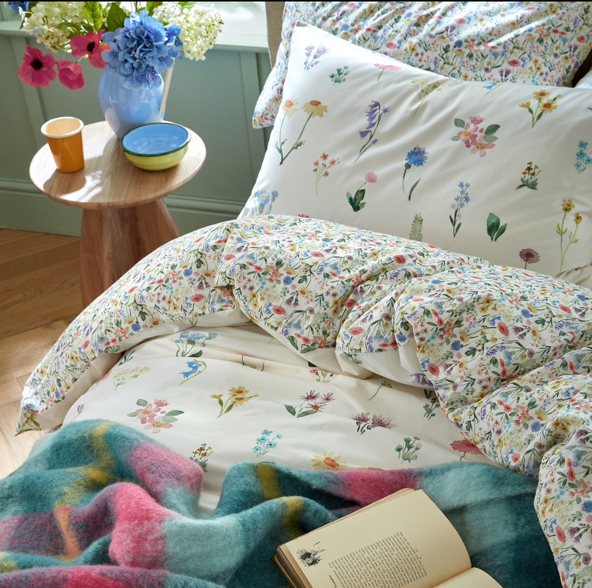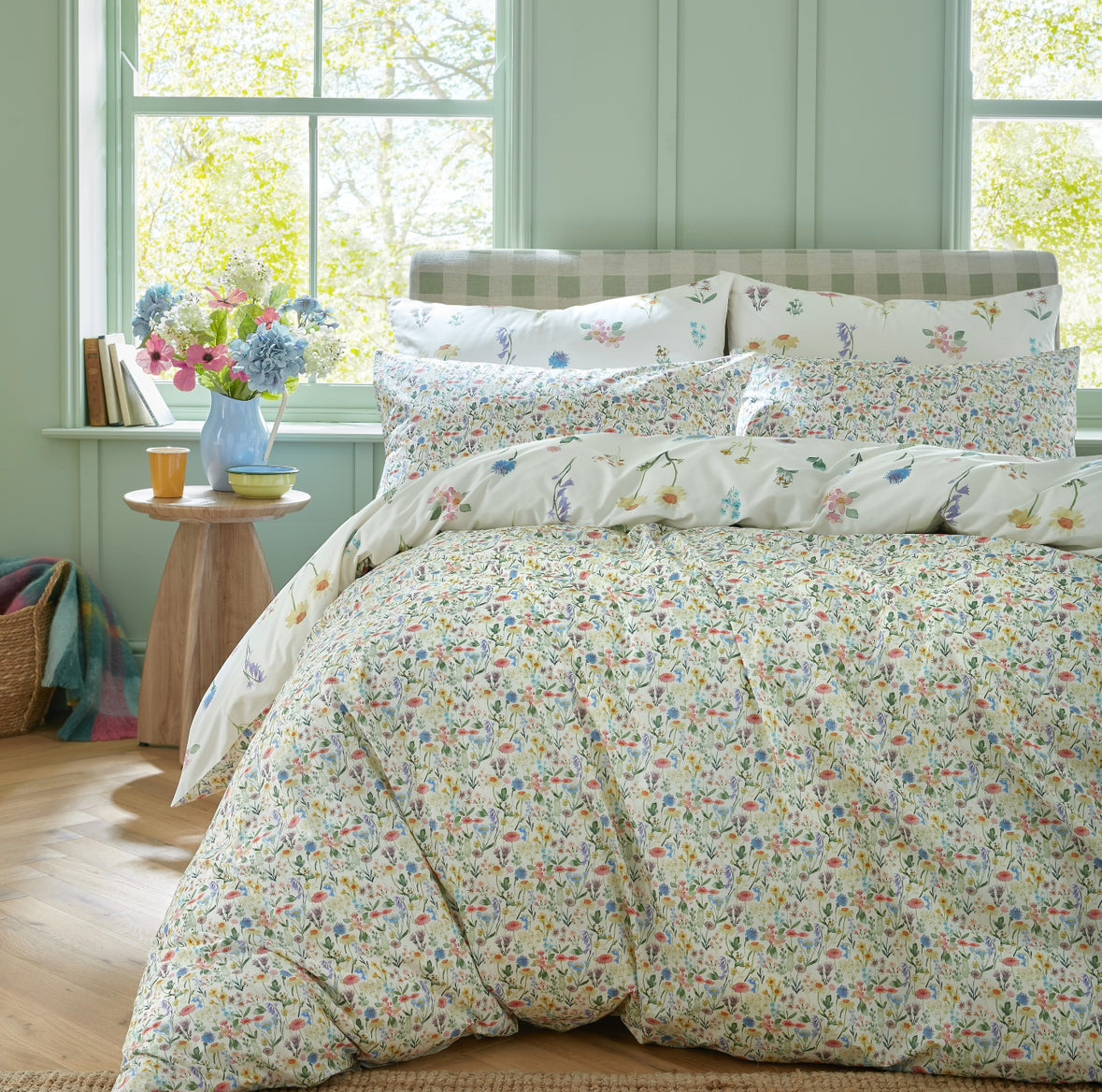 The Woodbridge bedding is alive with the spirit of the garden, hand-painted in a delicate botanical style that celebrates wild flowers in bloom. The front has an airy, placement-style design with a soft, natural feel, while the reverse is a full-coverage celebration of wildflowers in joyful colour. Offering two distinct looks in one set, it brings the beauty of the outdoors into your bedroom.